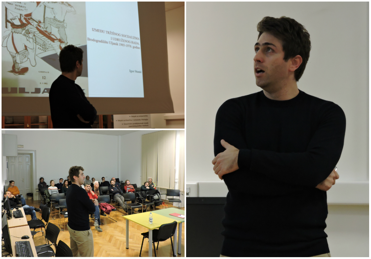Drugo javno predavanje u programu CKPIS-a za ovu akademsku godinu održano je u srijedu, 21. studenog 2018., u 18.00 sati u Dvorani Slavka Zlatića fakultetske zgrade u Ronjgovoj 1 (čitaonica, prizemlje). Doktorand Igor Stanić nastupio je s temom Između tržišnog socijalizma i udruženog rada. Brodogradilište Uljanik 1965-1976. godine.